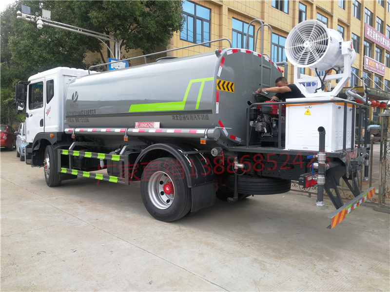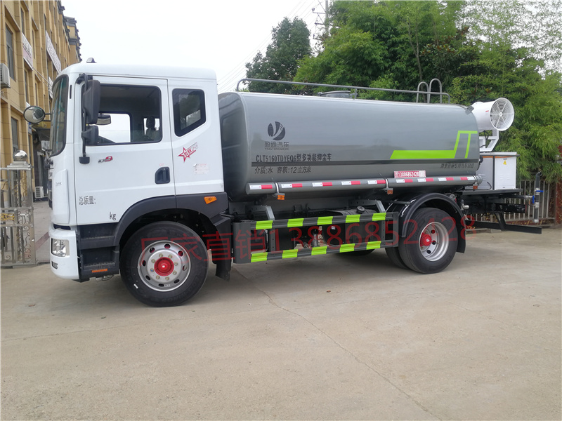 該車用途為抑塵降霾,主要裝置為罐體及噴霧裝置;隨底盤選裝駕駛室;罐體有效容積:12立方米;罐體外形尺寸(×長軸×短軸)(mm):4000×2300×1540,4200×2450×1700,4000×2450×1680;ABS型號:ABS系統生產廠家,型號 :焦作博瑞克控制技術有限公司,J ABS;襄陽東風隆誠機械有限責任公司,ABS/ASR-24V-4S/4M.側、后防護材料均為:Q235碳鋼,連接方式均為:螺栓連接,后部防護截面尺寸(mm):120×50,后部防護離地高度(mm):460.選裝附件位置,選裝噴霧裝置樣式,選裝油箱出口位置。