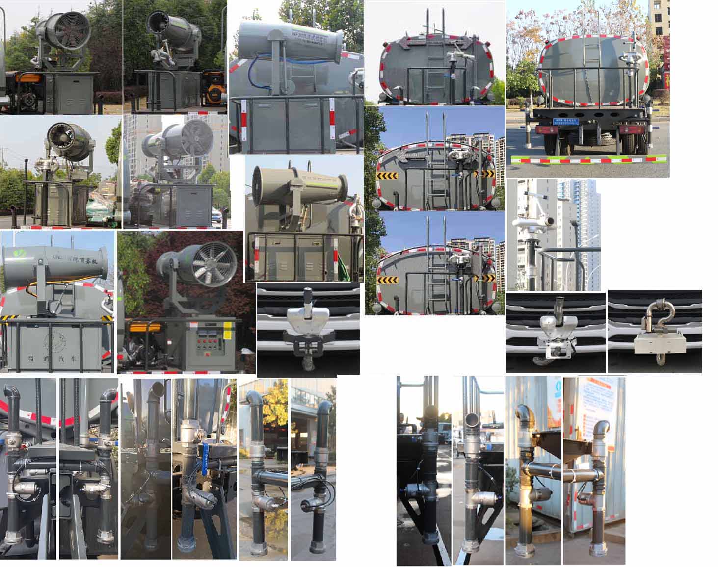 該車主要用于城鄉園林綠化,路面噴灑,除塵和降溫;主要裝置為水罐及噴灑裝置;隨底盤選裝駕駛室;罐體總容量:7.58立方米;罐體有效容積:7.22立方米;罐體外形尺寸(長×長軸×短軸)(mm):4200×2000×1310;ABS型號/廠家:ABS型號及生產廠家為:3631010-C2000/東科克諾爾商用車制動系統(十堰)有限公司,J ABS/焦作博瑞克控制技術有限公司;側、后防護材料均為:Q235碳鋼,連接方式均為:螺栓連接,后部防護截面尺寸(mm):120×50,后部防護離地高度(mm):450.選裝噴灑裝置。選裝噴灑裝置樣式,選裝后部箭頭燈,選裝后部弧形噴灑裝置,選裝水炮支架位置,選裝后部樣式,選裝自動球閥安裝位置,選裝自動炮裝置樣式,前伸500mm,整車長度為7700(mm)。 |