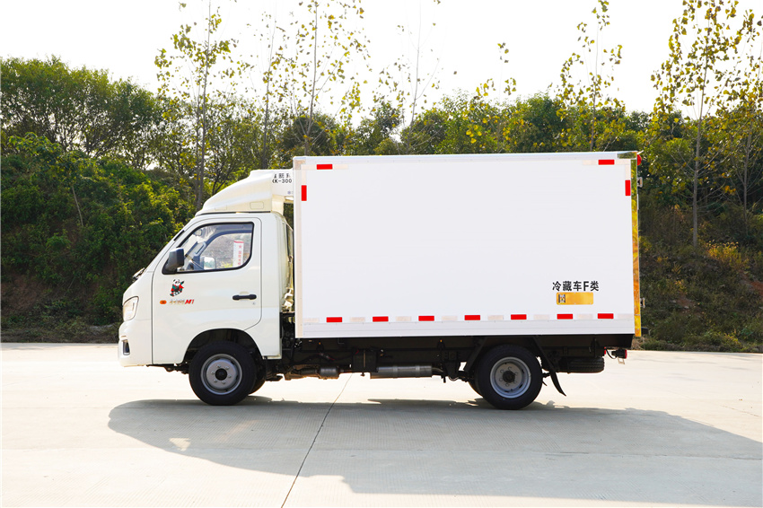 福田祥菱M1冷藏車采用國六汽油東安115馬力(DAM15KR)發(fā)動機(jī),5擋變速箱,2750軸距,高配,原廠空調(diào),后雙胎,5檔變速箱,175R14后雙胎,122后橋,ABS,電動助力轉(zhuǎn)向,