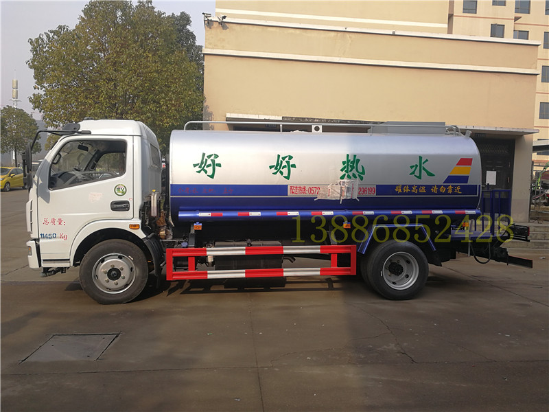 3、東風多利卡D9熱水配送車——玉柴200馬力、康明斯230馬力發動機,罐體保溫可裝10-13噸水;