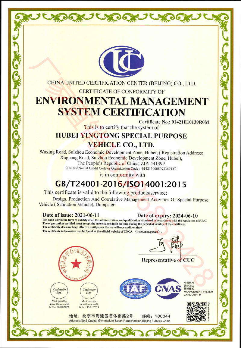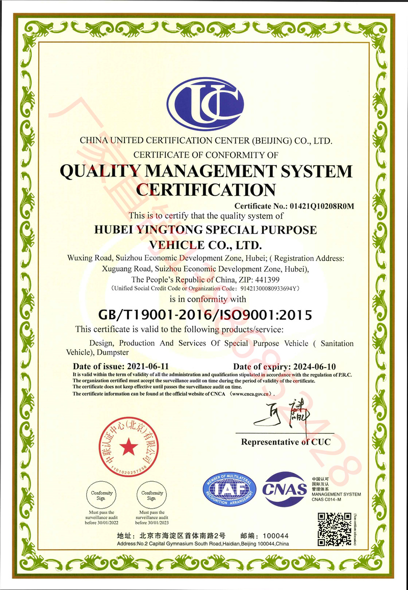 目前,集團(tuán)與同行業(yè)相比是生產(chǎn)資質(zhì)最全,產(chǎn)品品種最多的企業(yè),公司環(huán)衛(wèi)車和輕型專用車產(chǎn)銷量排全國第一位,是全國第一家一次性通過A2、C2三類壓力容器;低速貨車升級(jí)為輕型載貨汽車生產(chǎn)資質(zhì)通過國家審核驗(yàn)收;消防車國家新標(biāo)準(zhǔn)驗(yàn)收的民營企業(yè)。在全省唯一取得隨車起重機(jī)生產(chǎn)制造資質(zhì)的企業(yè);是中國專用汽車之都—隨州市專用汽車領(lǐng)軍企業(yè)。