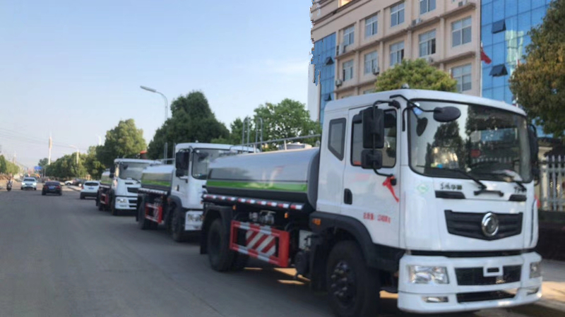 主要由發動機帶動變速箱,變速箱上安裝的取力器帶動灑水泵,灑水泵產生動力,將罐體內部的液體通過管網噴灑出去。工作范圍:自吸高度:≥7m,灑水寬度:≥14m,**射程:≥28m;可調節成柱狀,射程≥28m;也可調節成霧狀,射程≥5m