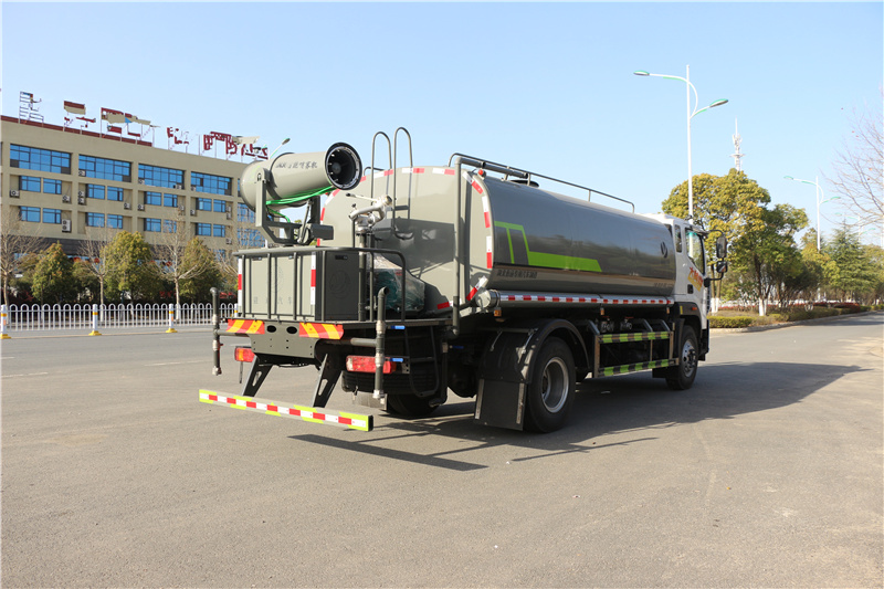 奧鈴16方灑水車_福田16方灑水車_單橋16方灑水車_玉柴16方水罐車,該車用途為抑塵降霾.主要裝置為罐體及噴霧裝置;罐體有效容積:15立方米;罐體外形尺寸(×長軸×短軸)(mm):4800×2450×1600;側、后防護材料均為:Q235碳鋼,連接方式均為:螺栓連接,后部防護截面尺寸(mm):120×50,后部防護離地高度(mm):480;ABS系統型號:ABS-VI.E;生產企業:廣州瑞立科密汽車電子股份有限公司.ABS系統型號:ABS-E;生產企業:威伯科汽車控制系統(中國)有限公司.選裝噴霧裝置樣式。采用4500mm軸距。