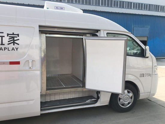 2、執行客戶要求:廂體嚴格按照公告尺寸定制,廂體內部采用圓弧型定制廂體材質為內外玻璃鋼,中間夾層采用5個厚聚氨酯發泡隔熱材料,廂體一次成型,底板為花紋鋁板,門框邊飾全不銹鋼件,后門雙開配備零下5度制冷機組其余配置執行我廠標準配置生產。