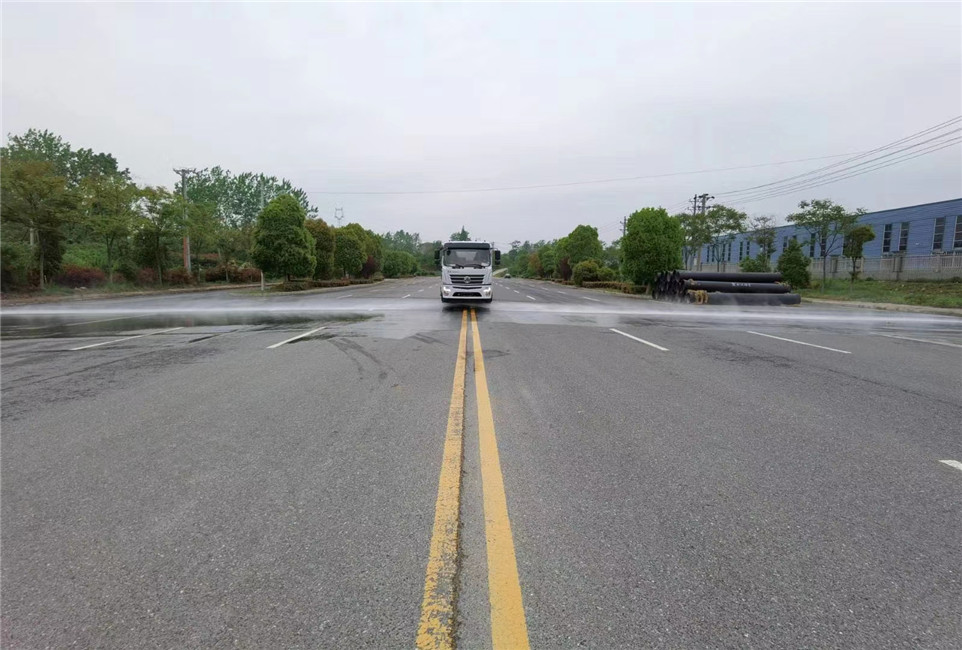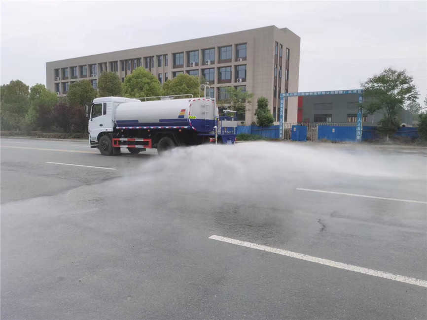 專用功能配置:罐體實際容積約為15立方米,采用武鋼4mm優質碳鋼板一次卷壓成型,完全做到無縫成型。配備專用灑水泵,前噴后灑、側噴、