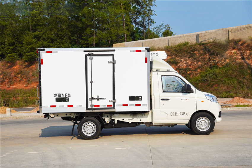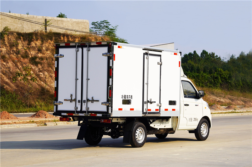 福田祥菱M1冷藏車采用國六汽油東安115馬力(DAM15KR發動機,5變速箱,2750軸距,高配,原廠空調,后雙胎,5檔變速箱,175R14后雙胎,122后橋,ABS,電動助力轉向