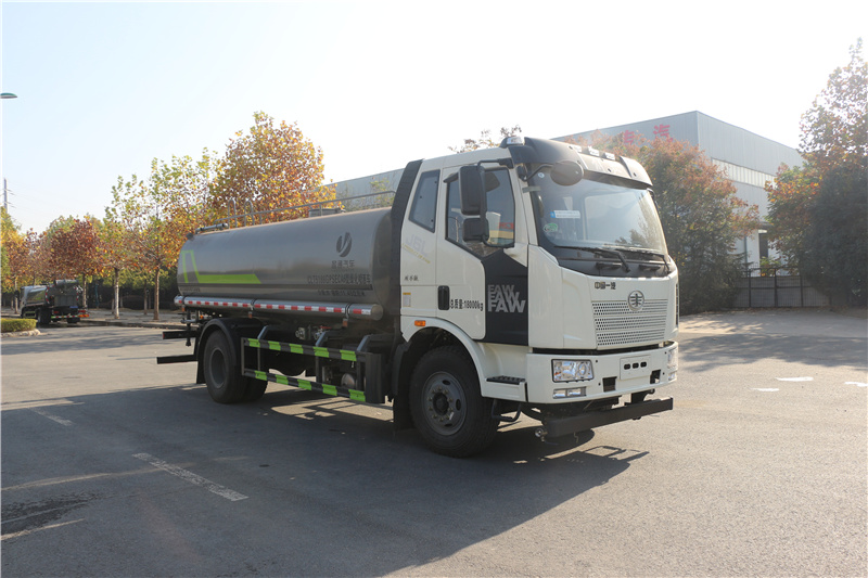解放J6灑水車_解放15方灑水車_J6L大柴225灑水車_湖北盈通專用汽車有限公司,該車主要用于城鄉園林綠化噴灑,噴藥;主要裝置為水罐及噴灑裝置;罐體有效容積:11.45立方米,罐體外形尺寸(×長軸×短軸)(mm):5200×2300×1410;ABS系統生產廠家:長春瑞立科密汽車電子有限公司,型號:CM4XL;側、后防護材料均為:Q235碳鋼,連接方式均為:螺栓連接,后部防護截面尺寸(mm):120×50,后部防護離地高度(mm):480。隨底盤選裝駕駛室。選裝噴霧裝置樣式。
