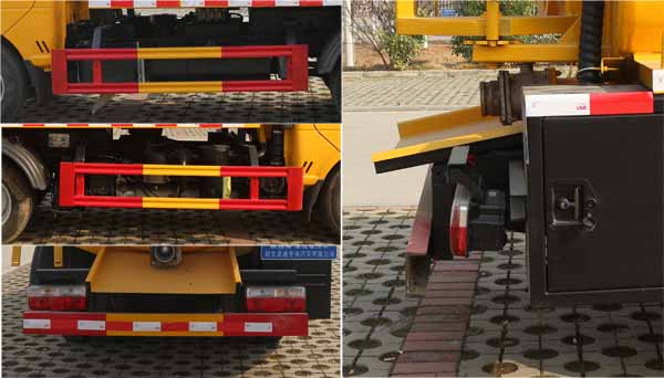 該車用于下水道排污及疏通,專用裝置:罐體及清洗吸污裝置;罐體外形尺寸(×長軸×短軸)(mm):2800×1550×1000,罐體前段為清水罐(1590mm,其中前端下部1100mm用于安裝高壓泵);后段為污水罐(1210mm);污水罐總容量:1.29立方米,污水罐有效容積:1.23立方米,介質:液態污物,密度800千克/立方米;清水罐總容量:1.03立方米,清水罐有效容積:0.98立方米,介質:,密度1000千克/立方米,清水罐和污水罐為獨立罐體,清洗功能時用清水罐,吸污功能時用污水罐,污水罐和清水罐不可同時滿載,兩罐不能同時滿載使用;ABS型號/廠家:APG3550500A/浙江亞太機電股份有限公司;側、后防護材料均為:Q235碳鋼,連接方式均為:螺栓連接,后部防護截面尺寸(mm):100×50,后部防護離地高度(mm):360.僅采用底盤2800mm軸距改裝.選裝油箱及電瓶位置。隨底盤選裝駕駛室。