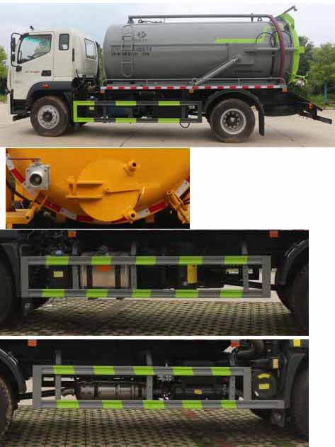 福田12方吸污車,領航12方吸污車,抽排運污車,糞便液態吸糞車,泥漿液態轉運車,該車用于吸除水坑、下水道里污濁物;主要裝置有罐體及吸污泵總成;罐體總容量:11.55立方米,罐體有效容積:11立方米;罐體外形尺寸(總長×直徑)(mm):4800×1800;ABS控制器型號為CM4XL-4S/4M,ABS控制器生產企業為廣州瑞立科密汽車電子股份有限公司;側、后防護材料均為:Q235碳鋼,連接方式均為:螺栓連接,后部防護截面尺寸(mm):120×50,后部防護離地高度(mm):490.僅采用底盤3950mm軸距改裝.隨底盤選裝駕駛室,選裝后部出口樣式;選裝左側樣式,選裝油箱出口及電瓶位置。